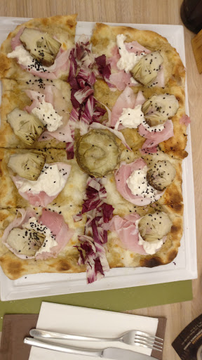 Read moreLocale pulito e accogliente, anche se c’era molta gente si riusciva a parlare al tavolo. Personale giovane e gentile, Federica fantastica e simpaticissima. Abbiamo preso un tagliere di affettati accompagnato con la fornarina (tipo di schiacciata), buonissimo e abbondante anche per due persone. In seguito abbiamo ordinato due pizze, un inferno (io) e una aristocratica (il mio amore). Le pizze erano veramente veramente buone. Mi sarebbe piaciuto prendere un’altra pizza ma sinceramente mi sentivo abbastanza sazio, Al momento del dolce la mia compagna ha preso un Trancio al torroncino (parfait al torrone con salsa al caramello salato e mandorle caramellate), buonissimo. Scherzando con Federica mi ha detto che avevano le pizze baby, a quel punto non ho resistito ed invece del dolce ho preso una baby aristocratica e una porzione di olive all’ascolana. Per concludere ho preso un bel digestivo (Amario). Grazie per la gentilezza e simpatia dello staff per la bella serata che abbiamo passato, torneremo sicuramente a trovarvi. Prezzo medio basso e velocissimi...
