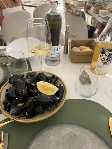 Let's start with the good: the service was extremely nice and welcoming. As we don't speak Italian, we were attended by a waiter who spoke English. The restaurant is also very clean and by day has a good view to the sea. We were recommended a bottle of wine which we really liked. From the food the Cozze were decent and the Pasta with scampi tartare was fine.