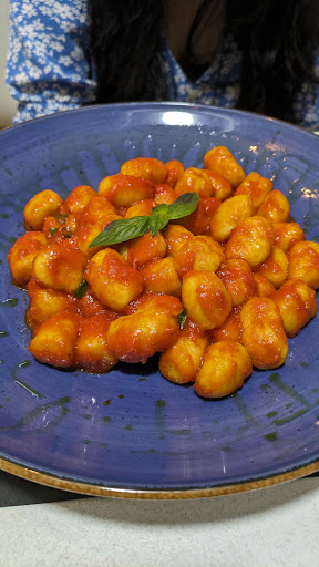 We came here for dinner last night and I am glad we did. We had the vegetarian pasta dish as well at the gnocchi in tomato sauce. I thought the pasta dish (can't remember the name but it was vegetarian and had some spiciness to it) was delicious. The taste was really good and I would get it again! As for the gnocchi, I thought it was pretty good but on the sweeter side without as much flavor. I thought it was really nice they serve a small appetizer and a small brownie at the end without a charge.