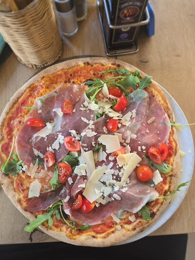 We came to this restaurant by chance around 2.30pm, since we were not very hungry, we ordered a pizza to share and some wine to chill. We enjoyed the food, relaxing atmosphere, waitresses were really friendly. We decided to come back in the evening. We were equally impressed, good food, service fast, food came fast even restaurant was full, friendly staff, the young waiters were efficient, smiling, they really worked, serving customers happily ....amazing young people, we were impressed by their 100 % attention. Bravi....
