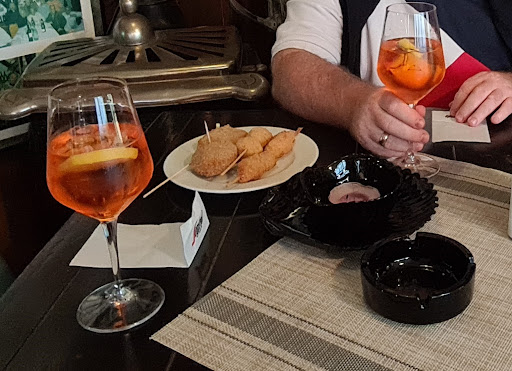 Spaghetti al nero di seppia was not so good that I did not finish it at all. Found it too salty and the squid added was not so good. It is not what I had just 2 months ago from a restaurant in Venizia Mestre. My husband, however, was lucky with his food. He liked it a lot. It was a mixed of meat. It was very tasteful. I could recommend it. We came early so we had some aperol spritz paired with some deep fried dishes that costs 12 euro. Funny this restaurant still have a section where you can smoke. Owners were hard-working and though they could not speak much English, it went well. When the waitress asked what I wanted, I told her to give me time as I am googling the name of the dishes. When a non Italian couple sat beside us and asked about the dishes, this same waitress said, just google:) Even if the food I chose was not my liking, I will give this a 4. Still worth to come here and just order the mixed meat. Their tiramisu is the one of the best I...