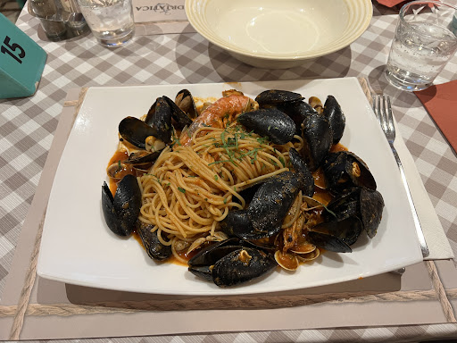 Read moreIeri , sabato sera, abbiamo deciso di cenare in 2 in questo locale. Il proprietario ci ha subito informati che avremmo dovuto attendere 20 minuti. Abbiamo atteso un pò meno. Una volta seduti abbiamo ordinato 1 piatto di spaghetti allo scoglio e una pizza Margherita. Il primo piatto è arrivato in pochissimi minuti. Abbiamo pazientemente aspettato la pizza mentre con stupore notiamo che ai clienti giunti dopo di noi venivano servite delle pizze. Abbiamo chiesto al ragazzo della nostra pizza e ci ha assicurato che avrebbe prontamente fatto una verifica. Peccato che dal nostro tavolo vedevo l' angolo pizzeria dove il ragazzo non è mai andato continuando a fare il suo lavoro. Attendiamo altri 10 minuti un altro dipendente, presuppongo fosse un addetto alla cucina, passando tra i tavoli ci chiede se tutto va bene: rispieghiamo il tutto facendo notare che la persona con me aveva finito di mangiare e che era mezz'ora che attendevamo una pizza margherita. Di tutta risposta ci dice che sarebbe andato a vedere l'ordinazione. Noto che in effetti controlla un foglio senza chiedere nulla ma senza neanche ritornare solo per darci una tempistica. In tanto è passata mezz'ora e in questa mezz'ora anche la ragazza che teneva i tavoli sottocontrollo per sparecchiarli notando la cosa ci sorrideva e passava oltre. A quel punto ho cercato il titolare e ho fatto le mie dimostranze annullando l'ordine. Per onor di cronaca era molto dispiaciuto dell' accaduto ed era visibile, dopotutto la colpa non era sua. Ha provato a spiegare che era sabato... ok possiamo capire, ma quello che non ci è andato giÚ è la poca attenzione al cliente. à giusto anche dire che per scusarsi dell' accaduto non ci ha fatto pagare. Gesto che non è da molti e lo abbiamo apprezzato anche se avremmo voluto uscire pagando e con soddisfazioni invece di lasciare il locale con rammarico per la mortificazione del proprietario e per il...