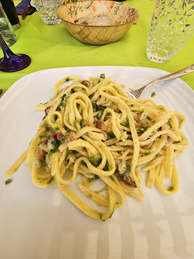 Read moreNa eens stevige wandeling van een 12 tal km begonnen onze magen te rammelen. Bij het opzoeken van een restaurant kwamen we al snel uit op pizzeria La camardella. Toen we aankwamen rondt 18:11 werden we op open armen ontvangen door de vrouw des huize. Desondanks wij de prachtige Italiaanse taal niet krachtig zijn haalde ze alles uit de kast om ons te bedienen op een vriendelijke en sociale manier. Zonder dat we er om vroegen werden we verast met een heerlijk stukje brood en met de hand gesneden stukjes ham. Nadat de eerste honger gestild was kwam ze even later om de hoek gewandeld met een enorme schotel pasta fungi, die overigens heerlijk was. 8 biertjes later, een fles rode wijn en een hoop heerlijk eten begon het al redelijk donker te worden. Euforischer kon de avond bijna niet worden… Maar er was nog 1 klein probleempje, wij hadden Nog geen slaapplaats. Met knikkende knieën en een ingestudeerde Italiaanse tekst stapte 1 van mijn reis compagnons op de eigenaars af met de brutale vraag of er nog een plaatsje vrij was in de tuin voor 2 tenten. Ik wist persoonlijk niet dat je op een plaats 2 x met open armen kon ontvangen worden maar La Camardella did the trick! Een echte aanrader! Vele liefde en groetjes van de 4...