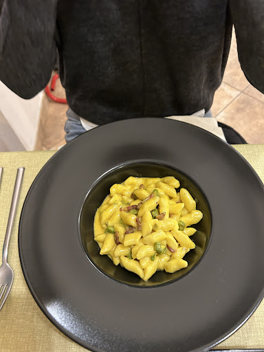 Read moreCena estiva proposta da un carissimo amico. Ci siamo ritrovati così nel ristorante ‘Makkaroni Bros.’ accolti dalla stessa calorosa piacevolissima ospitalità come quella che un tempo offriva quel rinomato ristorante aquilano ospitato dalle stesse mura. Riccardo, Stefano e lo Chef Sbroglia mantengono la promessa riposta nei piatti selezionati, non sofisticati, sottilmente raffinati. Dal baccalà fritto alla polpetta al sugo nella classica terrina, dalla pera glacé allo zafferano alla tagliata sfumata in birra. Ogni sapore é autoctono, tradizionale, non banale, franco ( aggettivo e anche omonimo omaggio allo Chef ). Un ristorante nuovo e vivace che esprime il proprio carattere e nuova identità dai piatti agli arredi, ma che trova il suo posto nello storico contesto di Piazza S.Maria Paganica e della chiesa capo quarto sulla quale si affaccia. Da tornarci assolutamente per assaggiare le altre portate de la carte, i dolci, i vini, le birre e chissà se non con familiari, colleghi di lavoro e stessi...