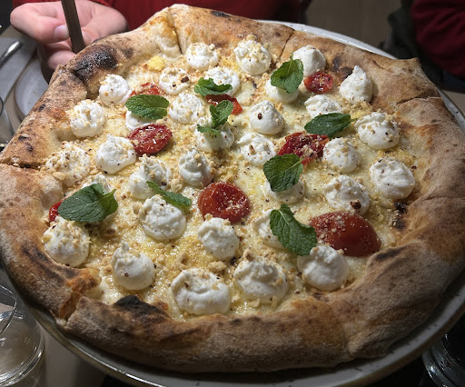 Ho provato varie pizze con impasto tradizionale e sempre da asporto. Una ottima pizza che definirei contemporanea: impasto leggero digeribile; cottura sempre vicina alla perfezione; cornicione che si lascia mangiare tutto; condimenti abbondanti e di alta qualità oltre che ben distribuiti su tutta la superficie. Nel menu ce n'è per tutti i gusti ed anche di più! Spero di provarla sul posto ed anche di altre tipologie di impasto (integrale o cereali). Il locale è piccolo ma carino, accogliente e informale. Faccio un solo appunto: soprattutto per alcuni tipi di pizza con condimenti diciamo più bagnati (creme, funghi etc.) sarebbe utile tenere la pizza qualche secondo su una griglia per farla raffreddare leggermente, invece di metterla con la pala dal forno direttamente nel cartone; in questo modo si evita di arrivare a casa e rischiare di trovare il cartone bagnato che si sfalda durante il taglio e la pizza un pò moscia, come mi è capitato una...