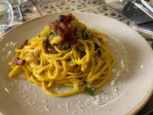 Read moreSono arrivato stasera con mia moglie Prima di noi c'erano solo due persone Abbiamo chiesto delle patatine fritte, ovvero Chips Le hanno portate dopo qualche minuto e una buona parte di esse non erano fritte ma quasi bollite Avevamo contemporaneamente ordinato chitarre al tartufo fresco e tagliatelle al pomodoro Nel frattempo il locale si è riempito Hanno servito tutti Hanno portato taglieri hanno portato pasta hanno portato pizze Ma solo agli altri Ci sono voluti tre quarti d'ora per sollecitare la pasta La pasta al tartufo aveva sì del tartufo ma sembrava del cartone tagliato sottile perché i sapori di tartufo erano veramente blandi Tralascio che la porzione di pasta era per un bambino di 5 anni, ovvero un quarto di porzione Non mi sono voluto lamentare come faccio normalmente Abbiamo finito di cenare e ho chiesto il conto La signorina mi ha detto che al tavolo il conto non lo portano, ma sarei dovuto andare sopra nel locale E così ho fatto Mi sono piazzato davanti la cassa ed il signore che doveva farmi pagare era impegnato a spostare bottiglie di vino, nonostante mi avesse visto, ha continuato a spostare le bottiglie di vino Dopo 7 minuti e 35 secondi cronometrati finalmente è arrivato E ho potuto pagare Certo che uno aspetta per cenare ma non aspetta per pagare Non ho voluto fare storie anche qua Ma la mia recensione è pessima Sconsiglio a tutti di andare in questo locale Sono stato da un altro locale che si chiama la stessa maniera da Giorgione a Latina, non ha nulla a che vedere con questo non è dello stesso proprietario Ali si mangia molto bene, tant'è che ci siamo tornati più volte e ci ritorneremo Ma qui lo...