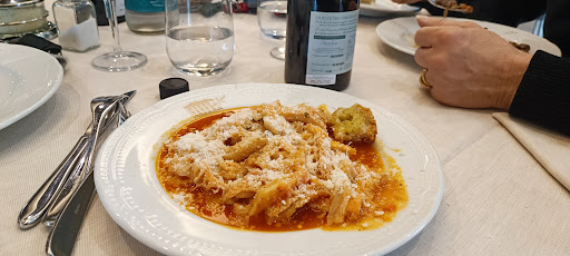 Read moreRistorante pulitissimo, ci troviamo di fronte ad un ampio ristorante con un ambiente pulitissimo, molto accogliente, dove trovi un eccellente servizio composto da camerieri molto educato e disponibili ad ogni tipo di richiesta che i clienti fanno. Il cibo è altamente buono e cucinato ad Arte da uno Chef veramente sopraffino e preciso. Ho mangiato dei carciofi alla Romana, fatto a regola d'arte che solo nelle vere trattorie di Roma fanno. Carme cucinata in maniera eccellente. Mi sono trovato di fronte ad una vasta scelta di vini medio alti , fatto di qualità. Svariati primi piatti eccezionali e antipasti preparati con certosina esperienza. Dolci fatto in casa decisamente squisiti. Complimenti a tutti. Ritornerò sicuramente in quel ristorante. Consiglio a tutti di andare in questo meraviglioso Ristorante!! E sono sicuro che rimarrete più che...
