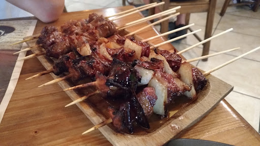 Un locale trash con arrosticini regular!!! Avevo sentito parlare di questo locale da amici, ma dopo averlo provato credo erano sotto effetto di droga per dire che ha gli arrosticini più buoni. Ho provato quelli classici, fatti a mano e quelli di fegato. La prima portata gli arrosticini sono venuti nel classico coccio ed erano senza sale oltre ad essere SECCHI!!! Sembravano essere stati riscaldati o da carne congelata. La seconda portata gli arrosticini erano su un vassoio "???!!!" Mai visto a L'Aquila neanche nelle sagre. Bruschetta al tartufo da rinominare, ai funghi aromatizzati al tartufo, e quella di salsiccia consiglierei di mettercela la salsiccia in modo da rendere il pane tenero come si fa a L'Aquila, mettere uno strato sottile di salsiccia e farlo seccare sulla brace è come dare del pane secco. A fianco a noi c'era un tavolo con una ragazzina, hanno atteso più di 30 minuti e la bimba si stava addormentando sul tavolo... Mentre a tutti gli altri tavoli il servizio scorreva. Mi dispiace che nel locale nessuno è stato sensibile da offrire una misera bruschetta o un po' di patate fritte alla bimba e i suoi. Servizio mediocre e locale orribile. Dulcis in fondo lo scontrino che not non riporta i piatti, infatti ci sono stati rifilati anche se in buona fede, 4,5€ del piatto di verdure che non ci è stato portato e avevamo chiesto di annullare....