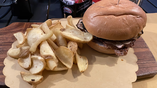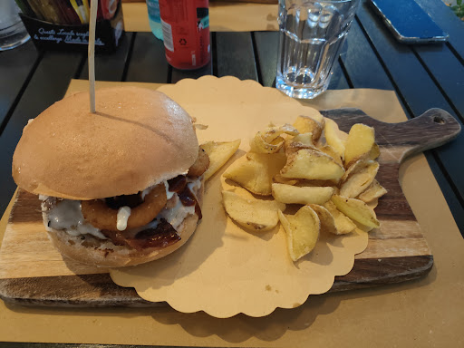 Read moreLocale situato in pieno centro a La Maddalena tant'é che i posti all' esterno sono direttamente su Piazza Comando, di fianco il Bar Milano, ma hanno anche altri posti all' interno prenotabili (quelli all' esterno non sono prenotabili). Per il parcheggio si parcheggia su strada dove si trova. Ci eravamo già venuti una volta lo scorso anno a settembre e devo dire che anche l'altra volta i panini erano veramente ottimi, peccato che ci eravamo venuti di sabato ed il servizio era stato veramente lentissimo, questa volta invece ci siamo tornati di martedì sera, quindi durante la settimana, ed il servizio é stato veramente perfetto infatti in nemmeno 10 minuti ci hanno portato tutto. Per i panini niente da dire perfetti, io ho preso un RingBurger con Hamburger, Bacon, Anelli di Cipolla, formaggio maionese e salsa BBQ (le salse sono a scelta ed io ho tolto il pomodoro). Nei panini c'è anche la possibilità di farti portare le patatine insieme sia le Stick che le dippers (quelle con la buccia). Anche i fritti buonissimi e si vede la qualità, abbiamo preso dei nuggets e 1 crocchè con mortadella e pistacchio, entrambi strepitosi e poi infine anche il dolce (tiramisù) veramente buono. Per 4 panini con patatine (per ogni panino), nuggets, crocchè, cheesecake, tiramisu 2 coca cole e 2 acque abbiamo speso 80€, i prezzi sono saliti un po' rispetto agli anni passati, ma come da ogni parte, ma almeno personalmente penso che li vale tutti!!...