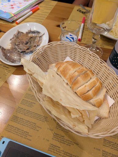 Read moreYum, the seafood risotto was perfectly undercooked delicious fresh sea animals perfectly cooked smelled herbal and tomatoy when it arrived then the nutty rice, great medium rare entrecôte steak with tomatoes (so nice to have this combo cuz of ideas of the compliment of the tomato’s acid with the steaks fat), the gnocchetti bolognese was great!, plumb flan in a cup was perfect not too sweet so fresh and well balanced, the house white and red wines were pleasant. Sweet staff nice plaster work on the interior walls. Perfect meal...