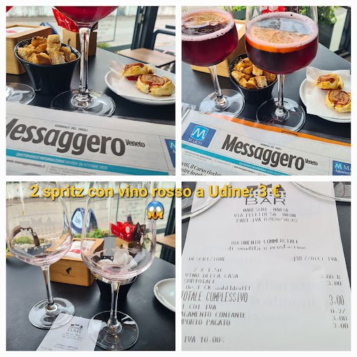 Cmq lo stress non c'entra: fa meraviglia il costo dato che nel Veneto lo spriz rosso o bianco lo paghi al max 2 euro accompagnato con patatine o arachidi. Ho aggiunto due foto del 24/10 a riprova di quanto asserito. Più due a Grado del 27/10:...