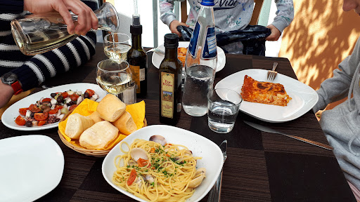 Do not eat here, it's a complete rip off! The owner is very communicative and speaks English. He sold himself well because the portions were super small for the money we paid. We met four other guests at the pizzeria next door after dinner as they were also still hungry - it was not only us or subjective! I understand that Italians eat more than one course but this was super expensive for what we got! We ordered 1/4 house wine (6 €), the fish ravioli (10 pcs for 22 €) and lasagne (vegetarian for 16 €) - see picture. Coperto 2,50 € per person, we didn't even get bread. The taste of the food was ok even though the ravioli were still a bit raw and not al dente. There was only one (dirty) toilet for all guests and the toilet is so close to the wall that you can't sit straight on it (if it was clean). I would never go there again and can't recommend...