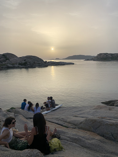 They bring you cushions to sit on the rocks. This is a very comfortable way to spend your evening.