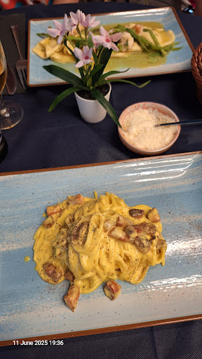 We ordered 2 dishes, Spaghetti alla Carbonara and Lasagnette Gamberi, and we're not...