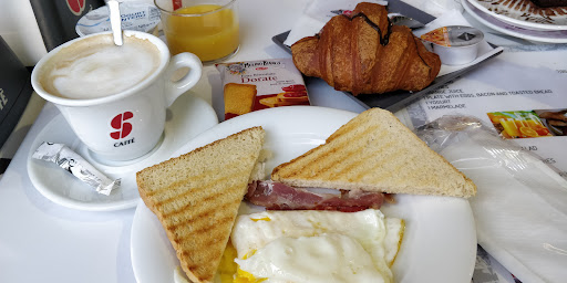 Should have read the reviews before heading to this convenient place next to our hotel for breakfast. Because that's all it is, convenient next to train station. Ordered 6 continental breakfasts and an extra fruit salad. We got orange juice from carton, low end plain yoghurt, airplane marmelade, bagged biscotte, filled croissant/brioche not up to standard, industrial bread for toast, only eggs and bacon were kinda fresh but then again it's the easiest thing you'd say but no, eggs we're overcooked and bacon was very very salty which means low end product in general... When trying to ask about croissant fillings, the guy (not Italian) could not be bothered as he had "other customers waiting" i.e. 2 people sitting on the terrasse... When serving, cappucino's were cold, we did not bother sending back. I was amazed that there were certificates hanging on the wall for following a cappuccino making and decorating class... Fruit salad had melon and mushy watermelon, miles from the picture on the menu. Near the end of breakfast (20min later), the same waiter would come and ask to pay (never had this before in my life!). So please do read the reviews beforehand, mine is for breakfast only but it surely does not want to make me come back and try the rest. Check my other reviews for finding a decent breakfast...
