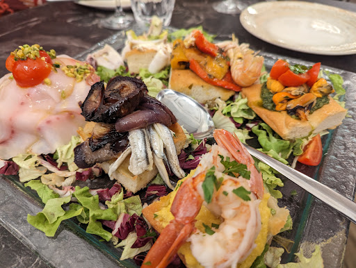 Read moreWe had a four course meal to share (Appetizer, first course, second course, dessert) plus drinks at a very fancy restaurant in Florence (also a super touristy crowded city mind you) with amazing ambience, with a renowned chef featured in many magazines. It all came to about €70-€80 total and was worth every penny because of how incredible the meal and service was. Why am I mentioning this? Because when these guys charged the exact same amount for three courses featuring rubbery octopus, stale mashed potatoes, and an overly salted cod ‘with roasted potatoes’ (with no roasted potatoes to be seen) we felt like we were robbed blind. The clam linguini was the only good part of the meal. It seems the main focus was on the presentation of the meal. I’m giving the service two stars and not one because I believe the servers were a little overworked that night but honestly the staff was curt and despite having made a reservation in advance, our table was not set up at all. They literally placed our cutlery directly on the table outdoors, no napkin, no placemat underneath. There are better eat outs in La Spezia, and definitely way better ones in other parts of Italy. Go to Bella Vista, go to il Boconcino, but stay away from restaurants like these that are charging a premium for...