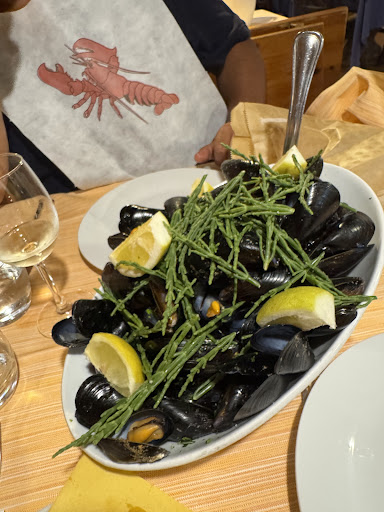 Read moreMi aspettavo di meglio... Sinceramente si capisce che la materia prima ce l'hanno e la sanno anche lavorare, però evidentemente la velocità e la voglia di tenere i prezzi bassi, hanno il sopravvento... Le cozze sono al 90% stracotte e tutte ritirate, solo alcune sono cotte giuste, sembra quasi che siano state aggiunte successivamente. L'antipasto misto di cozze è molto buono, perché ci sono quelle fritte, quelle sgusciate e anche impanate che sono molto buone. Lo spaghetto allo scoglio è abbastanza buono. Il servizio è un po' da rivedere, perché mi ero lasciato nel cartoccio un po' di focaccia da mangiare con il primo, e me l'hanno portata via pensando che fosse vuoto il sacchetto : magari chiedere.... Sorrisi zeto. Il prezzo finale è abbastanza contenuto ma la qualità è da 6 ---...
