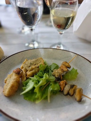 The food though, probably worst meal I've ever had when eating out. My mom and I both got the fixed menu, started off with plates of appetizers, none which really had flavor... Also if you want flavor (pepper, cheese, etc.) It all comes in plastic containers. Our first plate was lobster pasta that didn't have lobster and I had fried weird pesto pasta... Both extremely salty and not good. Dinner was the fried seafood... shrimp was fried in the shell so almost impossible to eat. I had stuffed mussels, but couldn't tell what they were stuffed with as it tasted like mush..