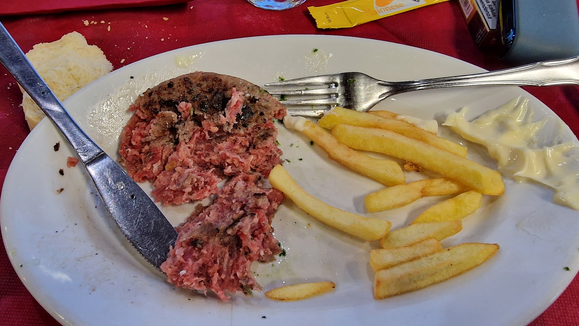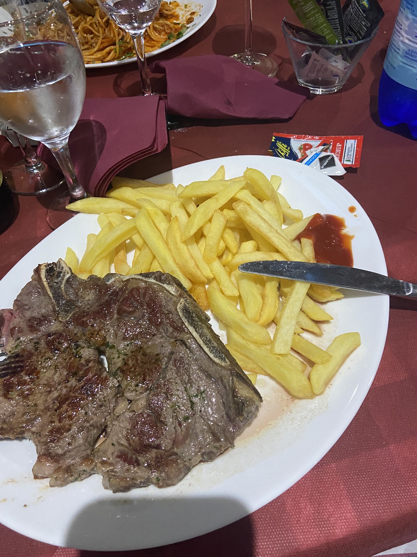 Read morePessimo , cameriera maleducata e con un tono irriverente , allora iniziamo .....veranda chiusa per il forte vento quindi immagino che essendo chiusa non si potrebbe fumare a invece giustamente lo facevano senza che nessuno gli dicesse nulla ,va be', chiediamo di spostarci di tavolo perché a noi ( ex fumatori) dava fastidio già lì la cameriera era scocciata .....abbiamo ordinato una bottiglia di acqua naturale e ci ha portato un bottiglia da due litri che noi a casa la usiamo per cucinare o per innaffiare le piante ....( Tutti i ristoranti qua in Sardegna usano Smeraldina o San Martino o altre di marca e per la maggior parte in vetro ) ....passiamo alle pietanze io ordino un trancio di pesce spada alla ricetta isola rossa non un gran ché ...mio marito un piatto composto salsiccia insalate patatine ...pietoso ....le patatine sembravano prese e rifritte due o tre volte , la salsiccia non si sapeva cosa era ....sempre la solita cameriera ci porta il contenitore non le bustine solite di olio, aceto ,sale ecc ....sale una bustina sola di sale gli chiediamo altro sale e ce ne porta un'altra sola ,alla nostra richiesta di altro sale ci ha guardato male e ci ha detto molto scontrosa " ma davvero non vuole un'altra? Non ne ho più di sale è finito " dopo un po' quando abbiamo quasi finito ci porta una ciotola son del sale e un cucchiaino ......la birra era fresca ma a quando avete un bicchiere si è fatta calda .....prezzi carissimi , dentro i bagni non vogliono visti non capisco come rimane aperto ..... Soldi buttati , noi siamo residenti lì vicino di certo non faremo una recensione positiva ,,,la ristorazione è tutta un'altra cosa !!!!.....PER CHI È INTOLLERANTE DOVETE ALZARVI E ANDARE A CERCARE L'ELENCO DENTRO NON SO DOVE , PERCHÉ NEL MENU NON C'È .......EVITATE QUESTA SPECIE DI RISTORANE !!!! Per la cameriera cambia...