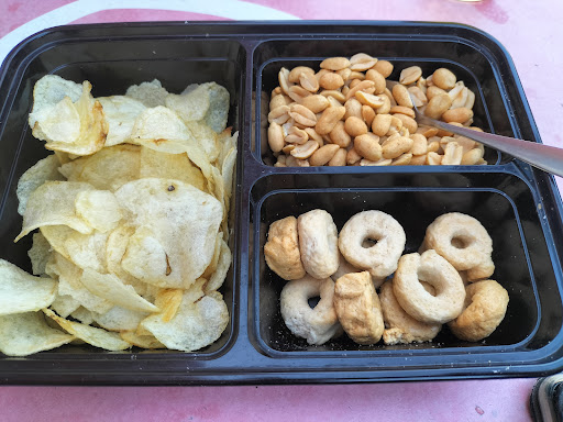 Mi ritrovo con un amico in questo locale e prendiamo una birra in bottiglia Ichnusa (€3,50). Locale semplice, senza molte pretese, con terrazza esterna con tavolini e ombrelloni. Oltre alla birra, ci vengono serviti degli stuzzichini molto graditi e buoni. Gentilissima la signora che ci ha servito. Parcheggio non comodissimo, essendo il locale, sulla strada. Locale...
