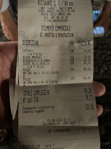 Read morePrenotiamo tramite l’ hotel San Montano per le 22 , ci presentiamo in anticipo ( 21.35 ) la signora bionda alla cassa , poco empatica , bofonchia che ci troverà posto subito. Peccato che passa un cliente e prende il nostro tavolo , poco male ne preparano prontamente un altro. Alle 21.40 siamo seduti alle 21.45 ordiniamo : 1 crudo per 4 formato da 8 scampi e non più di 300 grammi( parola d’onore) di Spigola , 1 porzione di cozze ( 12 cozze ) alla brace , 1 bottiglia di biancolella di casa d’ Ambra , 1 bottiglia di acqua…. Tutto ciò viene servito abbastanza in fretta , intorno alle 22.05 . Da questo punto in poi non ci calcola più nessuno neanche per portare una bottiglia d’acqua nuova, visto che la prima era finita da un pezzo. Verso le 23.10 ormai spazientiti abbiamo chiesto il conto portato prontamente dall signora empatica di prima allego foto dello scontrino … mai più , sconsiglio vivamente questo ristorante, maleducati e incapaci di dare un servizio decente , per quanto riguarda i prezzi mi sembra appena appena esagerato , non dico di essere stato imbrogliato ma poco ci manca. AGGIORNAMENTO 18/08/2024 Sono tornato dopo due anni e devo ammettere, sinceramente, di aver trovato una situazione totalmente diversa . Ho mangiato benissimo e sono stato trattato altrettanto benissimo. Il polpo fritto con i friarielli è stata una deliziosa scoperta . A...