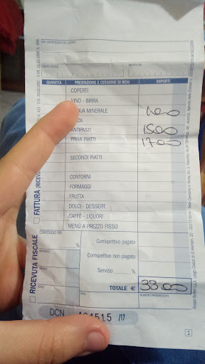 To conclude - it seemed like our hosts were only interested in our money and happy to overcharge whatever possible with none of the warm and kind Italian hospitality that we have received from so many people. We are hardworking people and no one deserves to be treated like that on the few vacations you can have. For prospective customers - rather go to the trattoria down the street which service amazing food at great value or for cheaper but nonetheless delicious pizza try the pizza bomber on the main square. We will not return...
