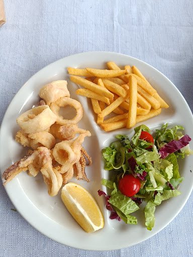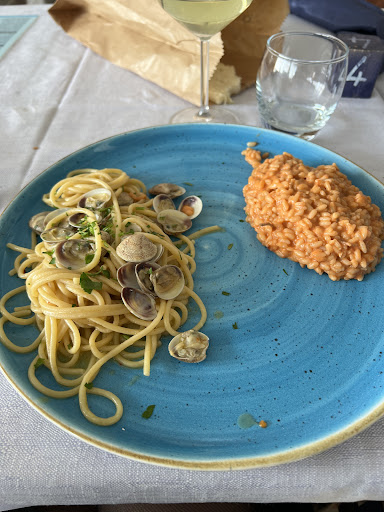 We ate here one evening and really enjoyed it. We had 2 spaghetti pomodoro, 1 spaghetti vongole, 1 portion of fries, one coke, one peach drink, one glass of wine and a bottle of water, it came to 52 euros. Eager, polite and friendly waiting staff, very friendly manager too. Made us feel welcome. The restaurant is stylish, comfortable, we had a fantastic table by the sea, well ventilated. So far so good. We returned two or three nights later and, unfortunately, this is the reason for the low rating. I asked for a half portion of fried calamari because we weren't sure we would eat it all or like it, and the waiter said yes. We ordered spaghetti vongole again. We got a small portion of calamari and also a smaller portion of spaghetti so I thought they had halved both by mistake. I asked and the waitress confirmed that the spaghetti was indeed a full portion, however it was much less than the previous night. When the bill came they had charged us full price for the calamari. I questioned this with the woman at the till (a manager I assume) who stated that we had a full portion and that they do not serve half portions. She suggested we call the waiter in question as she didn't believe we could possibly have been told that we could have a half portion. Her manner implied I was lying, but I really did not want a confrontation, particularly as the waiter had been so helpful, so I paid and left a tip even.