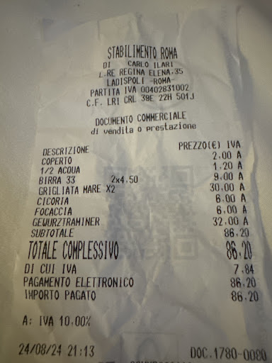 Alla cassa evidenziamo il nostro scontento riceviamo scuse imbarazzanti e da un conto di 83 euro (pesce alla griglia incompleto da 30 euro pagato 20 euro) tolgono ulteriori 8 euro quindi un totale di 75 euro.
