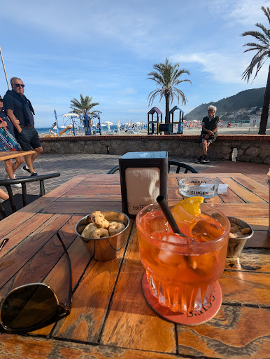 Read moreLocale fronte mare sul Molo di Laigueglia dove c'è un lembo di spiaggia libera molto frequentata. Arredi semplici e rustici, toilette sempre molto pulite durante l'arco della giornata seppur sia gettonato. Darei le cinque stelle per questo!! Comodo per chi usufruisce della spiaggia libera per colazioni, pranzo e aperitivi. Noi abbiamo tentato di fare colazione il giorno di arrivo ma purtroppo alle dieci non c'erano più croissant e il vassoio stracolmo sul bancone ( palesemente quelli congelati!! )a loro dire era tutto prenotato seppur i tavoli attorno fossero tutti serviti. Nessuna alternativa né di biscotti, baci di Alassio o altro con cui poter comunque colazionare. Non l'ho trovata corretta come scelta gestionale per cui do le tre stelle dalla delusione e disappunto. Lo abbiamo tenuto come punto di riferimento quando utilizzavamo la spiaggia libera per qualche caffè, patatine o gelato durante la giornata. Non siamo stati attratti da nulla di più! Aperto fino a tardi. Prezzi nella norma. Personale giovane, cordiale, sorridente e professionale. In un punto così strategico e con una location ad angolo così invidiabile il punto di forza lo farebbero proposte particolari e accattivanti, scelta e prodotti di qualità non tanto per attirare clientela che è già notevole, ma per diventare un piacevole punto di riferimento facendone la differenza rispetto ai locali...