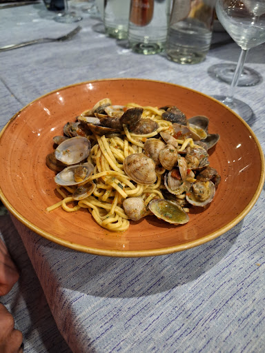 Read moreQuesto ristorante ci era stato consigliato da un'amica residente sulla costa, quindi, probabilmente, mi aspettavo molto da questo locale. Situato a pochi passi dal mare vanta una vista davvero ottima... Forse avendo il sole che batte tutto il giorno il locale è molto caldo... Ma ovvia leggermente a questo problema con climatizzatori, posti anche in veranda. Abbiamo iniziato con pepata di cozze (12€) normale nulla di eccezionale, poi tagliolini frutti di mare (16€) prende la sufficienza, piatto abbondante ma, per i miei gusti, un po' troppo carico di sugo, infine un fritto misto golfo (16€) è stato il piatto che mi ha deluso di più... Frittura molto spessa grossolana e pesante... Peccato perché mi aspettavo di mangiare il miglior pesce della zona. Nota di merito al personale e a chi li dirige, molto premurosi... Limoncello offerti. Il prezzo un po' alto in base alla...