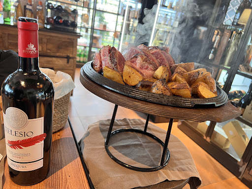 Fuimos a este restaurante por las buenas opiniones de Google, y porque nos conquistaron las fotos de Los Chuletones y Tomahawk. Nosotros somos unos grandes amantes de este tipo de carnes. Como había tantos tipos y no entendemos bien el italiano, le preguntamos al camarero cuál estaba en su punto óptimo de maduración y cual nos recomendaba. Nos indicó uno (80€/kg), advirtiéndonos que el peso mínimo era de un kilo. Le dijimos que bien, pero que no fuera mucho más, porque solo éramos dos . Nos dijo que sí, que eran de 1 o 1,2 kg aproximadamente. Más tarde llegó una chica para enseñarnos la carne, que parecía bastante grande, tenía un papelito (3 cm) en el que se indicaba, entre otras cosas, el peso. Yo alcancé a ver un 1 y un 3 y le pregunté a mi novio si 1,300 kg no sería demasiado grande. En ese momento, La chica nos preguntó si estaba OK. Por no debatirlo delante de ella. Le dijimos que OK. Al irse con el chuletón nos dejó el papelito y cuál fue nuestra sorpresa al leerlo de cerca y ver que 130 € era el precio y 1,660 kg el peso del chuletón. Inmediatamente fui detrás de ella para solicitarle una pieza más pequeña, pero ya había entrado a la cocina. Justo salió un camarero de la cocina y le expliqué la situación, me dijo que diera la vuelta al restaurante para hablar con la chica de la carne. No la vi. Cuando la encontré la carne ya estaba en el grill y no había nada que hacer. Entiendo que fue un malentendido y no fue culpa de nadie, pero nosotros le habíamos advertido al camarero de que fuera una pieza pequeña y la chica vio que nos planteábamos si era demasiado grande. Habría sido más adecuado que la chica se hubiera asegurado de que leíamos bien el papel o,al ver nuestra indecisión, nos hubiera ofrecido algo más pequeño (Ella sabrá que 1,600kg es más apropiado para 3 o 4 personas). En cuanto a la carne era de buena calidad y estaba bien cocinada. Pero apenas estaba madurada. Una carne de ese precio tiene que tener varias semanas de maduración e indicarlo en algún sitio. Cuando nos lo sirvieron, no volvieron a preguntar qué tal estaba, ni a ofrecernos una plancha o algo para calentar la carne al cabo de un rato. Tampoco tuvieron el detalle de invitarnos a un tiramisú que...