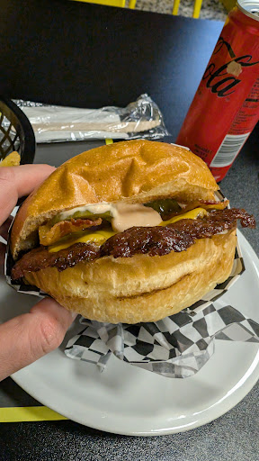 Read moreSono stato in questo locale specializzato in smash burger e devo dire che l’esperienza è stata davvero positiva. I fritti sono una delle cose che colpiscono di più: il pollo fritto è assolutamente da provare, croccante fuori e tenero dentro, con un gusto che lascia il segno. Forse un piccolo appunto: sarebbe perfetto se venisse scolato un po’ meglio per risultare più asciutto, ma la qualità delle materie prime si sente eccome.