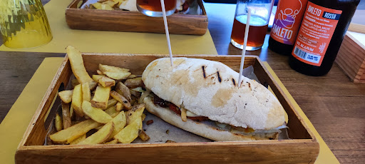Questo locale, piccolo ma accogliente, caldo e giovanile, situato a poche decine di metri dalla stazione centrale di Lamezia Terme (nel quartiere di Sant'Eufemia), é una vera e propria macelleria con ristorante annesso. La gestione è in mano a ragazzi molto in gamba e cortesi. Sono ben preparati nella spiegazione dei piatti e delle birre. "Pane e salsiccia" offre ai suoi clienti prodotti di ALTISSIMA qualità a prezzi alla portata di tutti. La varietà del menù è molto ampia. È possibile condire il panino a proprio piacimento seguendo i 4 passi sul menù (carina come idea): Tipo di pane; Tipo di carne; Altri ingredienti da aggiungere; Contorno. Personalmente ho preso una ciabattina casareccia con burger di vitello che si scioglieva in bocca , veramente succulento e di buona qualità, lattuga, formaggio cheddar, pomodori secchi, uovo all'occhio di bue e maionese, accompagnata da un contorno di patate casarecce fritte. Ottime anche le polpette di carne! Conviene prenotare. L'unica pecca è il bagno all'esterno del locale: troppo piccolo e poco gradevole. Lo...