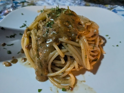 Read moreIl cibo non è male ma che spocchia! Mi fermo per la cena un paio di sere fa e la proprietaria mi accoglie ridacchiando con fare supponente e spocchioso. Non parliamo del servizio: nessun piatto per i gusci delle vongole e la cameriera che abbandona tovagliette e bicchieri per altri tavoli sul mio mentre mangio. Mi sono sentita a disagio e certamente non ben accolta. Le due stelle solo perché il cibo era discreto...per il resto un...