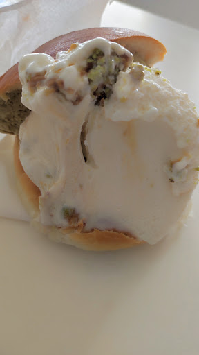 Read moreCornetti, cannoli e granite sono ottimi. Sui gelati c'è ancora da lavorare (soprattutto sul gusto "Pistacchiosa", davvero cattivo). Il prezzo delle granite è elevato dal momento che addirittura viene servita su un bicchiere di cartone/polistirolo (3€). Nella granita all'anguria ci sono veramente troppi semini neri e bianchi, sono abbastanza fastidiosi! Buonissime le granite al pistacchio e al cioccolato. L'arredamento del locale è vecchio, forse ci vorrebbe un rinnovo per modernizzarlo un po'; c'è anche un terrazzino interno con dei tavolini. Per mangiare è necessario fare lo scontrino e poi ritirare quello che è stato ordinato ma se per esempio avete preso un gelato/cornetto e un caffè, oltre alla fila per la cassa dovrete fare altre due file...Direi che questo metodo è decisamente da rivedere. Durante la mia vacanza sono stata in questo locale molte volte e quasi sempre i dipendenti non indossavano le mascherine ma le avevano abbassate. Di sicuro è una tappa obbligatoria per chi soggiorna a Lampedusa però, a mio parere, devono migliorare il rapporto che hanno con il pubblico e modificare le cose che ho...