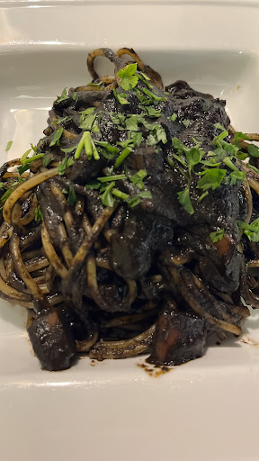 Questa sera io e mia moglie abbiamo avuto il piacere di cenare in questo locale .Nel menu abbiamo optato entrambi per gli spaghetti con pesto, gamberi e granella . Beh che dire…rappresentano un incontro perfetto tra mare e terra, un piatto che conquista al primo assaggio grazie alla sua armonia di sapori e consistenze. La base cremosa del pesto, arricchita dalla granella di pistacchi, avvolge delicatamente gli spaghetti, mentre i gamberi aggiungono una nota di freschezza e dolcezza. La croccantezza della granella di pistacchi completa il piatto, offrendo un contrasto piacevole alla morbidezza degli altri ingredienti. In ogni caso, gli spaghetti con pesto, gamberi e granella sono una scelta ideale per una cena elegante o un pranzo speciale, capaci di soddisfare anche i palati più esigenti. E per finire non può mancare il dolce, rigorosamente fatto in casa,il buonissimo Tiramisù al pistacchio. una deliziosa variante del classico dessert italiano che conquista al primo assaggio. La sua forza sta nell'equilibrio perfetto tra la cremosità del mascarpone e la ricchezza della crema al pistacchio, che aggiunge un tocco di eleganza e originalità. Stra...