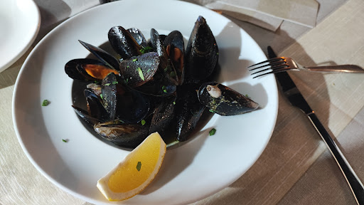 Read moreSconsiglio assolutamente di consumare in questo ristorante. Ci siamo fermati qui in quanto,non avendo prenotato da nessuna altra parte, ci siamo fermati siccome vi era un tavolo libero per due persone per cena. La cameriera si è mostrata molto disponibile all'inizio per trovare una soluzione vegetariana per il mio fidanzato siccome non vi era quasi niente presente sul menù senza pesce (potrebbero elencare i pochi piatti senza pesce direttamente sul menu) . Abbiamo aspettato quasi un'ora tra una portata e l'altra e prima dell'antipasto, nonostante il posto non fosse colmo. Risultato: impepata di cozze colma di sabbia, (a detta della cameriera può capitare anche se a me é la prima volta che capita in 29 anni) e un fritto misto con in mezzo un capello. Ho fatto notare il capello e mi é stato detto che avrebbero potuto rifarmi il piatto... peccato non avessi più voglia di aspettare così tanto. Infine, non ci é stato scontato un euro dal conto (abbastanza alto per il servizio e i piatti ricevuti). Da evitare assolutamente. L'ho percepito come il classico posto fregatura...