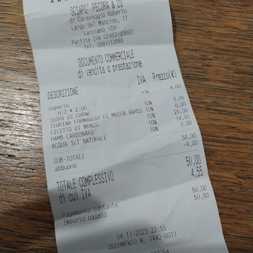 Read moreCute location, personnel very kind. When we received the starters, we understood that Sciapò is not here for second place. Very interesting proposals for starters and wide range of choice of meat. But you cannot come to Lanciano without having some arrosticini. I recommend to get a mix of all of their wonderful kinds of arrosticini, especially the ones made with ventricella. Don’t forget, you have to eat them with...