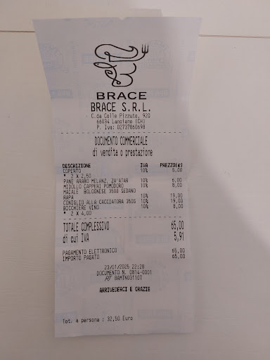 My wife and I had the wonderful opportunity to try Chef Carmine’s creations at his wonderful Lanciano restaurant “Brace restaurant.” The flavors he brings to the area shows how well traveled & how talented this chef truly is . It is an exceptional talent to be able to capture the flavors of ones travels & experiences. We began this culinary journey with a wonderful amuse bouche to set the pallet followed by a roasted eggplant dip and fresh arabic bread with a house za’atar seasoning . Everything is prepared in an open kitchen with food being grilled over coals Or roasted in their wood oven. We had a beautifully baked cheese caciocavallo with tomato & onion. additionally we enjoyed the wood oven baked zucchini with labneh, dukkah & topped with pomegranate (A favorite of my wife’s). We decided on a degustazione of meats from Canada to share with some delicious roasted potatoes in a yogurt, herb & leek oil sauce that was absolutely delicious . For dessert we enjoyed a grilled white peach with poppy seed gelato , which was so wonderfully put together with fresh thyme. This chef knows his flavors and knows balance, which was apparent from the first bite to the very last. Lanciano is lucky to have such a skilled Chef who brings new and exciting flavors to traditional dishes, it is truly a thing of beauty. Keep up the amazing work chef ! We can not wait to enjoy more of your seasonal creations. Do not hesitate...