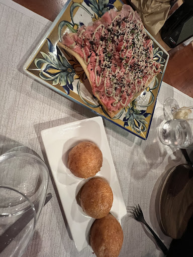 Read moreToccata e fuga a Lanciano. Siamo arrivati domenica in tarda serata, abbiamo cercato il ristorante più vicino e scoperta delle scoperte: Ruvido - ristorante atipico. Siamo stati accolti dal proprietario e ci ha invitati a leggere la prima pagina del menù nella quale c’era la descrizione della loro filosofia di cucina: un inno alla vita lenta e a tutti prodotti di prima qualità veri e autentici, il surgelato e precotto non è contemplato!! Tra tutte le proposte abbiamo preso: tris di pallette e carpaccio di scottona come antipasto, abbiamo poi optato per due giganti bistecche di Black Hangus accompagnate da “patate della nonna “ e cicoria ripassata (impressionate i sapori: quelle papatine fritte davvero ricordavano quelle fatte in casa dalla nonna la domenica a pranzo ). Il locale é curato nei minimi dettagli: bello e accogliente. Siamo stati benissimo, se dovessimo tornare a Laciano ci torneremo...
