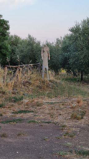 Read moreEntrare in questo luogo è estraniante. Non è tanto la distanza da Roma, che in effetti non è molta e dá alla giornata il sapore di una gita fuori porta, ma la commistione tra spazi agricoli, casali, cibo buono e Arte. Quest'esperienza del tutto particolare ha inizio dal viale verso il parcheggio, curato e incolto allo stesso tempo, in cui non ci si rende conto bene in quale posto si stia entrando. In questa indeterminatezza che lascia perplessi, scesi dalla macchina ci si trovata di fronte a una sedia macroscopica che primeggia sul paesaggio rurale cambiandone l'orizzontalitá e la prospettiva. Quasi in punta di piedi ci si orienta verso il casale tra opere d'arte colorate e altre mimetizzate con la natura incolta dell'intorno. Dall'altro capo della costruzione, si scorge un campo con una figura che si mette a fuoco lentamente, pare correrci incontro: è una statua gigante di bambina in mezzo a papaveri enormi, alti come canta la vecchia canzone. Ecco, in questa atmosfera che ti distrae dall'abituale, si varca la soglia interna del casale e si è accolti in una locanda familiare, anche se non ci si è mai entrati prima. Un grande camino acceso con papà sulla poltrona a riposare e mamma che gira per i tavoli con cortesia e attenzione. Con la stessa premura il figlio Giuseppe, proprietario cuoco e artista delle opere che popolano il luogo, ci consiglia sul percorso culinario al quale non poniamo alcuna reticenza, fiduciosi. Il cibo è fantastico dai sapori mai ovvi, in particolar modo la carne dal gusto succulento e genuino (forse la più buona che io abbia mai mangiato). Che dire, da provare e...