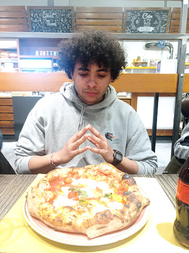 E non vorrei dimenticare di dirvi che la zona dove impastano la pizza e la infornano é a vista, per far capire quanto sia trasparente e quindi sicuro della propria igiene e cura dei prodotti che usano.