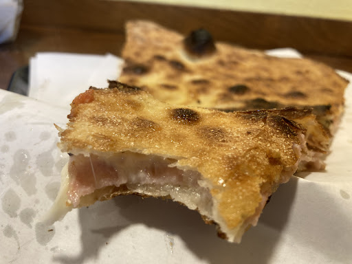 Die Pizzeria hat ein tolles Konzept: es gibt immer ca. 10 Pizzen in der Auslage und man kann sich von den verschiedenen Pizzen Stücke aussuchen. So konnte ich 5 verschiedene Pizzen probieren! Es gibt aber auch die Möglichkeit, sich eine ganze Pizza zu bestellen. Die Pizzen sind auch ordentlich groß! Als wir da waren, waren außer uns nur Italiener da. Die meisten haben einen großen Haufen Pizzastückchen zum Mitnehmen geordert. Das Ambiente ist halt eher Imbissmäßig, aber wir fanden es auf der Terrasse toll- nach dem Essen hatten wir das Gefühl, alle Nachbarn gesehen zu haben- man kann einfach das italienische Leben ungezwungen beobachten… Als Dessert haben wir uns ein Stück Nutella-Pizza bestellt und geteilt - richtig gut! Aber ich empfehle nur ein Stück zum Nachtisch und keine ganze Pizza davon-...