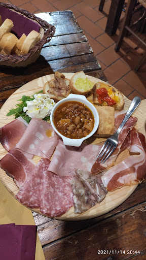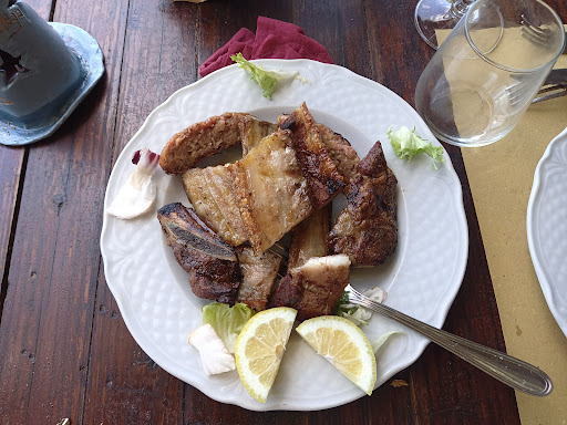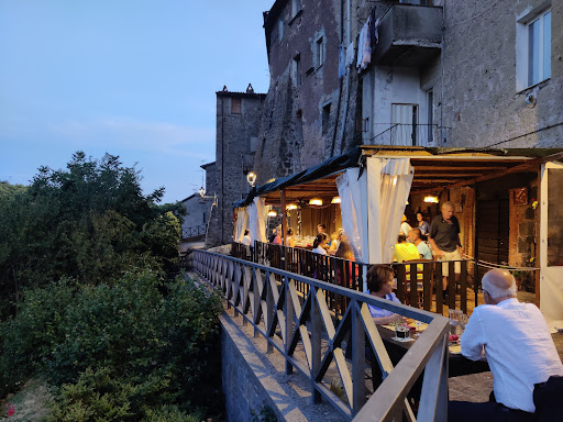 Read moreUna perla nell'alta Tuscia. Ne avevo sentito parlare e l'ho scelto come sosta pranzo durante un giro in moto. Il locale è piccolino, c'è posto solo per pochi tavoli ma l'atmosfera è deliziosa; ricavato da quello che presumo fosse una cantina e con i muri di pietra a vista può risultare un po' claustrofobico se riempie tutti i tavoli. Nel nostro caso c'erano altri 4 tavoli occupati e siamo riusciti a goderci il pranzo. Da notare che hanno anche un terrazzo all'esterno dove si può mangiare se non fa troppo freddo (non era questa la giornata adatta) e da dove si gode di una meravigliosa vista. Eravamo in 2 e abbiamo preso primo e secondo, poi Riccardo, il simpaticissimo ed affabile titolare, ci ha offerto un tagliere di bruschette ed affettati/verdure vari di gran gusto (dalle piccole cose si nota l'utilizzo di ottima materia prima). I primi erano davvero buoni: dei tonnarelli con peperoni, rucola e noci e tonnarelli con pancetta croccante e zucchine. Per secondo abbiamo preso un trancio di porchetta ripieno di salsiccia e castagne (STREPITOSO) con una crosta croccante che sembrava un biscotto e delle costine di maiale alla brace battezzate da me come le più buone mai mangiate in un ristorante/locanda/trattoria o che dir si voglia. Ha completato il pranzo un piatto di patate al forno che sembravano quelle fatte dalla buonanima di mia nonna, mi ha fatto ricordare i sapori delle case di una volta. Con mezzo litro di vino, acqua, 2 caffè e una grappa abbiamo speso la stratosferica cifra di 55 euro (non a testa!). Cosa aggiungere di più? E' un piacere quando si riescono a trovare realtà come questa che, con materie prime del territorio e tanta sapienza nel mantenere vivi i sapori della tradizione, sanno farti dire ancora "AMMAZZA CHE BONO!" Bravo Riccardo e bravi anche gli altri componenti dello staff, dal simpatico "braciatore" a quelli che stanno in cucina e non ci mettono la faccia.... ma...