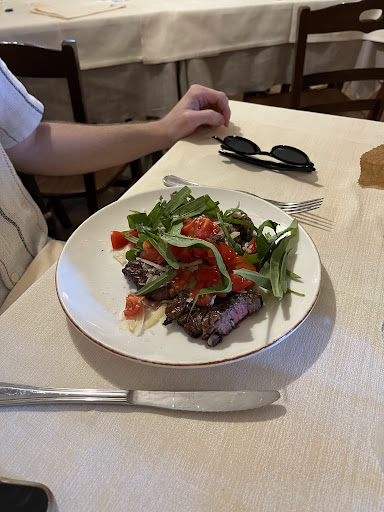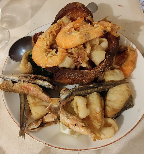 Let’s say, if you want a real experience of dining in with Italian people - come here. I don’t think we have been to more traditional place than this in Italy. I think the downside was that we visited it on Sunday where during the lunchtime as for two people you can order very limited number of dishes. In our case it was like 5 of them. Pizza wasn’t available at all, only two kinds of pastas and three kind of meats. If you are coming as a bigger group, I believe you would be able to choose from more options. Whether it’s fair or not is another matter. As a note is that people there barely spoke English, probably only one man that was serving us actually did. We were given a big bag of bread at the beginning which was pretty good apart from the fact that it had very burned crust. Pasta as for me was very regular seafood pasta with tomato sauce. And we also had steak with cheese and tomatoes which was absolutely weird combination of not combinable things. The lemon cake also wasn’t our favourite as it was combination of some cold lemon curd inside and warm sponge coating it with lots of cream on the side. Also we waited for coffee for at least 15 minutes. So if that wouldn’t be one of the only opened at that time places, I wouldn’t ever spend time...