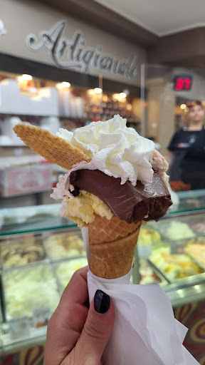 Read morePrecisando che il gelato non sarà sicuramente tra quelli 'veramente' artigianali, diciamo che il servizio, la pulizia e la gelateria in sé, contribuiscono a rendere piacevole una sosta qui, soprattutto ora che la struttura è stata rinnovata. Lamento i prezzi alti, come del resto un po' in tutte le gelaterie, perché il cono più piccolo - che prevede 2 gusti - parte da 3€!!! Non ho mai capito, tra l'altro, perché il costo del cono/coppetta è stabilito a partire dal numero di gusti, non dalla quantità di prodotto venduto! Il gelato si vende al kg, giusto? Dovrebbe esserci un listino che preveda cono piccolo, medio, grande...e relativi prezzi. Potrei prendere un gelato grande, (esempio, un cono da 5€), ma con un solo gusto,...