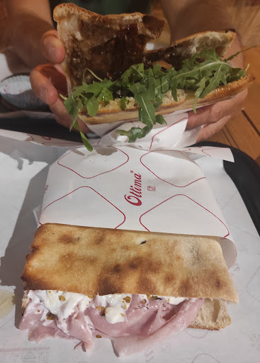 Idea di pranzo,cena o spuntino molto buona tranci di focaccia e taglieri da consumare sui tavolini esterni senza pagare nessun coperto. Locale con poco spazio per la consumazione e dove il servizio è solo per le indicazioni e la pulizia dei tavoli. Quando è pronto l'ordine che devi andare a fare alla cassa da solo suona la "sveglietta" che viene data al momento dell' ordine e prendi il tutto su un vassoio per portarlo al tavolo. Qualità del cibo ottima possibilità di variare ed aggiungere ingredienti all' interno di ogni trancio di focaccia che puoi personalizzare. Possibilità di cocktail e...