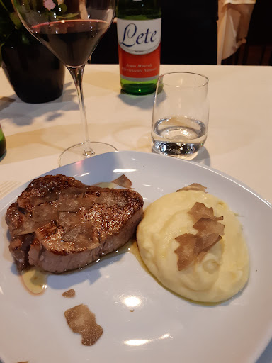 … un amico di Latina ci dice, .. ma non ci siamo mai andati alla Locanda del Bere a Borgo Faiti?? Così la settimana scorsa mettiamo l’indirizzo sul navigatore da C.so della Repubblica_Latina Pochi minuti dopo eravamo già arrivati, un borgo della campagna pontina, un paese nel paese, mi ha subito ricordato le vecchie stazioni di posta, con lo spaccio e il negozio del consorzio agricolo In fila con altre attività commerciali, quasi non lo scorgi, poi due vetrine, all’interno un fine arredamento in legno con cassettoni alle volte, pilastri in pozzolana e cotto, grandi armadiature x l’importante carta dei vini La mise en place è elegantemente sobria, ben curata, un sottopiatto rosso simbolo della ricorrenza natalizia e tovaglioli di stoffa bianchi Il menù è ricco di piatti di mare e di terra, ma il consiglio di Maurizio ci convince subito: antipasto di polenta e porcini freschi tagliolini al tartufo bianco Dalle foto nelle recensioni vedo che hanno in carta i vini del mio amico Luigi Ulisse della Tenuta Ulisse di Crecchio e non ho dubbi, “Amaranta” Montepulciano d’Abbruzzo, gran vino pluripremiato Si stappa e si assaggia, ma è solo un rito, con Ulisse non sbagli mai ed il carattere di questo vino conquista subito i miei ospiti, che spettacolo Tra una chiacchera ed un’altra arrivano gli antipastini, una bella polenta appena rosolata ed una cascata di funghi porcini saltati in padella, freschissimi e profumati, un grande entrée, degnissimo compagno del ns Montepulciano La giusta attesa della cottura della pasta ed arrivano i ns tagliolini al tartufo bianco, il profumo è avvolgente e preludia un piatto gourmet, il tartufo bianco affettato sui tagliolini impreziosisce un primo da urlo All’assaggio è delicato e il tartufo è ben presente, un grande piatto veramente riuscito, semplice ed al contempo importante, delicato e al contempo grandioso, sprigiona tutti gli umori di una materia prima di grande qualità Siamo di fretta e non prenderemo altro se non una bella tagliata al sangue da condividere e un’altra bella padellata di funghi porcini con la loro amica polenta La carne è cotta un filino in più ma è strepitosa, comunque ed accompagnata dai porcini gli rende grazia, perle di olio evo e l’impiantamento è da 10 e lode Complimenti sinceri a Maurzio e Signora, ospiti d’eccezione ed alla prox con...