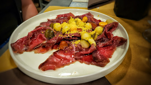 Splendido antipasto anche se poi non è arrivato tutte le portate scritte nel menù. E la risposta alquanto strana è che lo cambiano spesso. Strano perché si possono cambiare le tipologie ma non il numero dei piatti guarda caso in riduzione e mi viene detto dal cameriere che la polenta e la porchetta scritti non sono di stagione per cui non sono in antipasto. Mha. La cosa peggiore è stato invece la carne uno splendido filetto chiesto a cottura media ed invece è arrivato al sangue ma duro come una scarpa. Rimandato indietro scoppia una polemica assurda con una maleducata che mi ha guardato in cagnesco per tutta la cena. Sostituito con un Hamburgher che è arrivato salto e stracotto rispetto a quello che avevo assaggiato da mia moglie che invece era spettacolare. Per contorno ovviamente puntarelle senza alici e altri amici hanno preso la zucca che è arrivata bollita e pepata all'inverosimile. Un conto astronomico dove hanno inserito anche la tagliata al tartufo rimandata indietro. Inoltre alla cassa pagato il tutto la signora alla cassa continuava ad inveire. Forse dovrebbero essere un po' meno tronfi e con gentilezza senza aggredire comportarsi in maniera civile ed accettare anche delle critiche. Non tanto per il cibo ma per la maleducazione senza precedenti perché inoltre in barba a tutte le norme igieniche ha detto di aver assaggiato il pezzo di carne del mio piatto e che era tenerissimo. Mi guarderò bene dal ritornarci e lo sconsiglierò a tutti quelli che conosco. Non si fanno i dispetti ai clienti come fanno i bambini di tre anni. E soprattutto non si sta come un cane da tartufo attaccati al tavolo per beccare in fallo il cliente. Cara signora si curi tanto i nervi ed impari molta educazione prima di sparare a zero sui clienti. L'educazione è tutta...