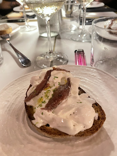 Abbiamo mangiato benissimo, il servizio un po’ lento, ma ottimo per scambiare due chiacchiere. Abbiamo preso come antipasto due tartare di manzo (una semplice e una al tartufo) entrambe eccellenti, carne squisita e tartufo tagliato fresco. Come primo abbiamo preso uno spaghetto con le telline, bottarga e olio di trombolotto (spettacolare) una porzione divisa in due ma come se fossero state due porzioni, un bel quantitativo di spaghetti e tantissime telline. Come secondo abbiamo preso un polpo arrosto con patate e scarola, magari per il costo del piatto due tentacoli sono un po’ pochini, ma il polpo era così ben cotto e saporito che non fa niente che era “poco”. A fine pasto ci hanno offerto due amari, davvero buoni, non ci capisco nulla, ma davvero buoni. I camerieri sono stati super gentili. Come accennavo prima, il servizio è stato un po’ lento, ci siamo seduti alle 20:40 e ci siamo alzati per le 22:30-22:40, però la cucina è piccolina e i tavoli sono abbastanza, quando siamo andati il locale era abbastanza pieno quindi la lentezza è più che comprensibile, soprattutto perché i piatti sono anche ben impiattati (anche quello porta via tempo). In fine ci hanno fatto anche lo sconto, in tutto: 2 antipasti 1 primo 1 secondo 1 contorno 2 acque 1 spritz 60€ Più che soddisfatto; super...